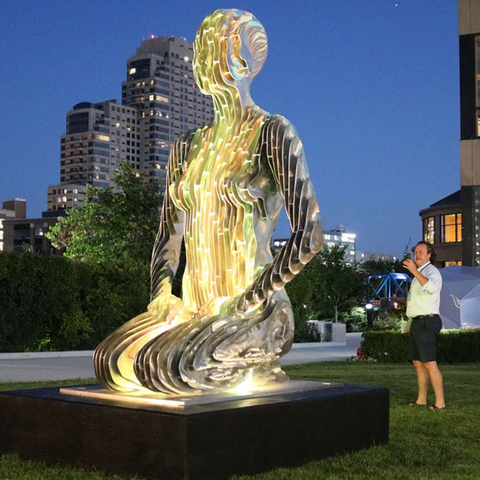 Beroemde Moderne Roestvrijstalen Verdwijnen Abstract Lady Mannelijke Figuur Art Sculpturen Voor Met De Lichten