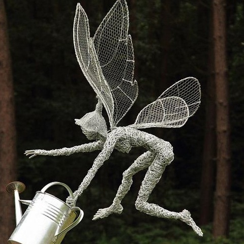 Moderne Garde Decor Vliegende Elf Fairy Roestvrij Staaldraad Tekening Sculptuur Te Koop