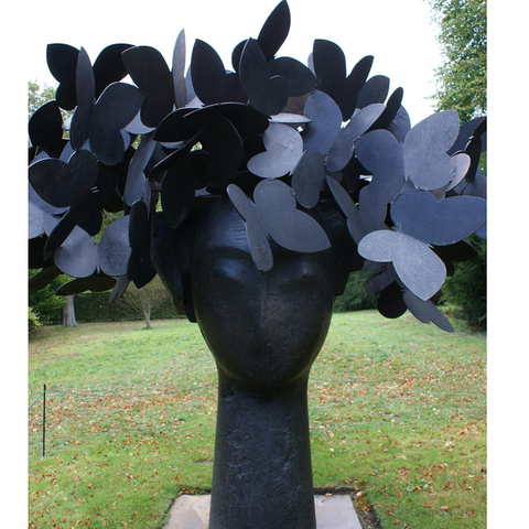 จีนผู้ผลิต Modern Art Bronze บทคัดย่อผู้หญิงหัวประติมากรรมผีเสื้อสำหรับขาย